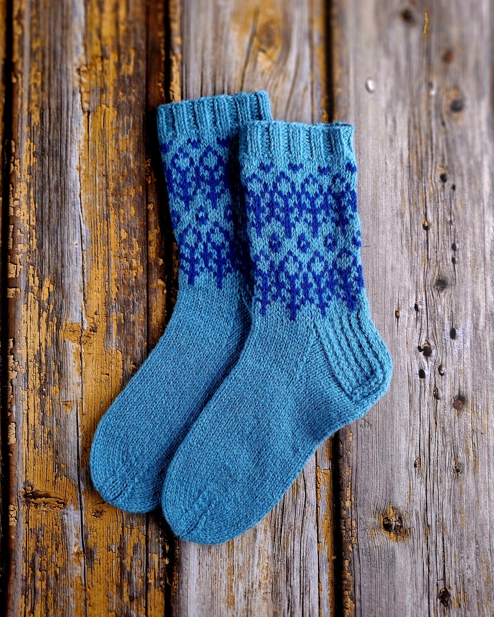 Materjal: 100% Hiiumaa lambavill Suurus: 36-37 Värv: Sinised toonid