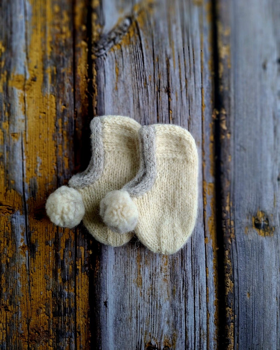 Valged käsitsi kootud villased sussid lastele– Hiiumaa lambavill