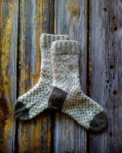 Sokid on käsitsi kootud kasutades ainult 100% naturaalset Hiiumaa lambavilla – villa, mis on tuntud oma erilise pehmuse, soojuse ja vastupidavuse poolest.