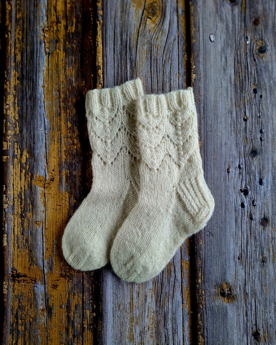 Need valged villased sokid lastele (30–31) on kootud ehtsast Hiiumaa lambavillast, mis on tuntud oma erakordse pehmuse ja sooja hoidmise poolest.